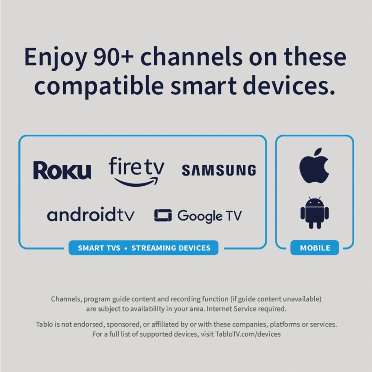 Tablo is your portal to a vast world of TV entertainment. The Tablo total System includes an indoor TV antenna and connects to the internet to deliver free live network TV along with a selection of streaming channels available on compatible smart devices in your home. With the Tablo apps on all your devices, the whole family can watch, record, and replay their favorite broadcast TV shows from ABC, CBS, Fox, NBC, PBS and more. Enjoy the freedom of watching the TV you love anytime, from live sports and local news to prime-time shows and free streaming series, all with zero fees or contracts. With 128GB of onboard storage.